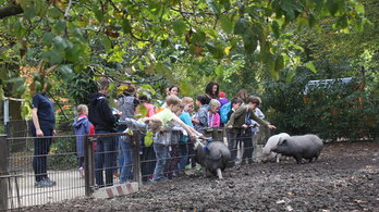 Hungrige Wildschweine und tierliebe Kinder sind eine gute Kombi: Das zeigte der SWUbi-Club-Ausflug am 29. September 2017 in den Tiergarten Ulm. Dort warfen die Clubmitglieder einen Blick inter die Kulissen, fütterten die Hängebauchschweine und löcherten die Zooschullehrerin mit neugierigen Fragen.